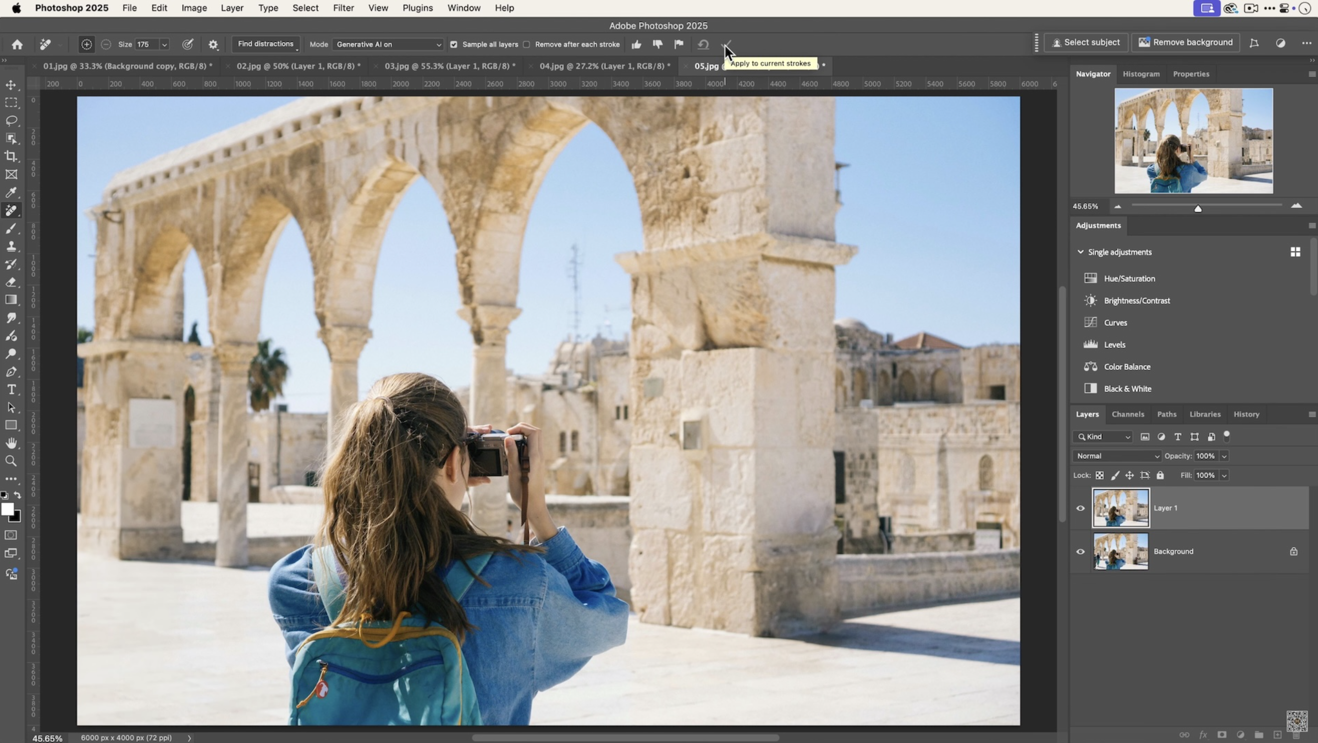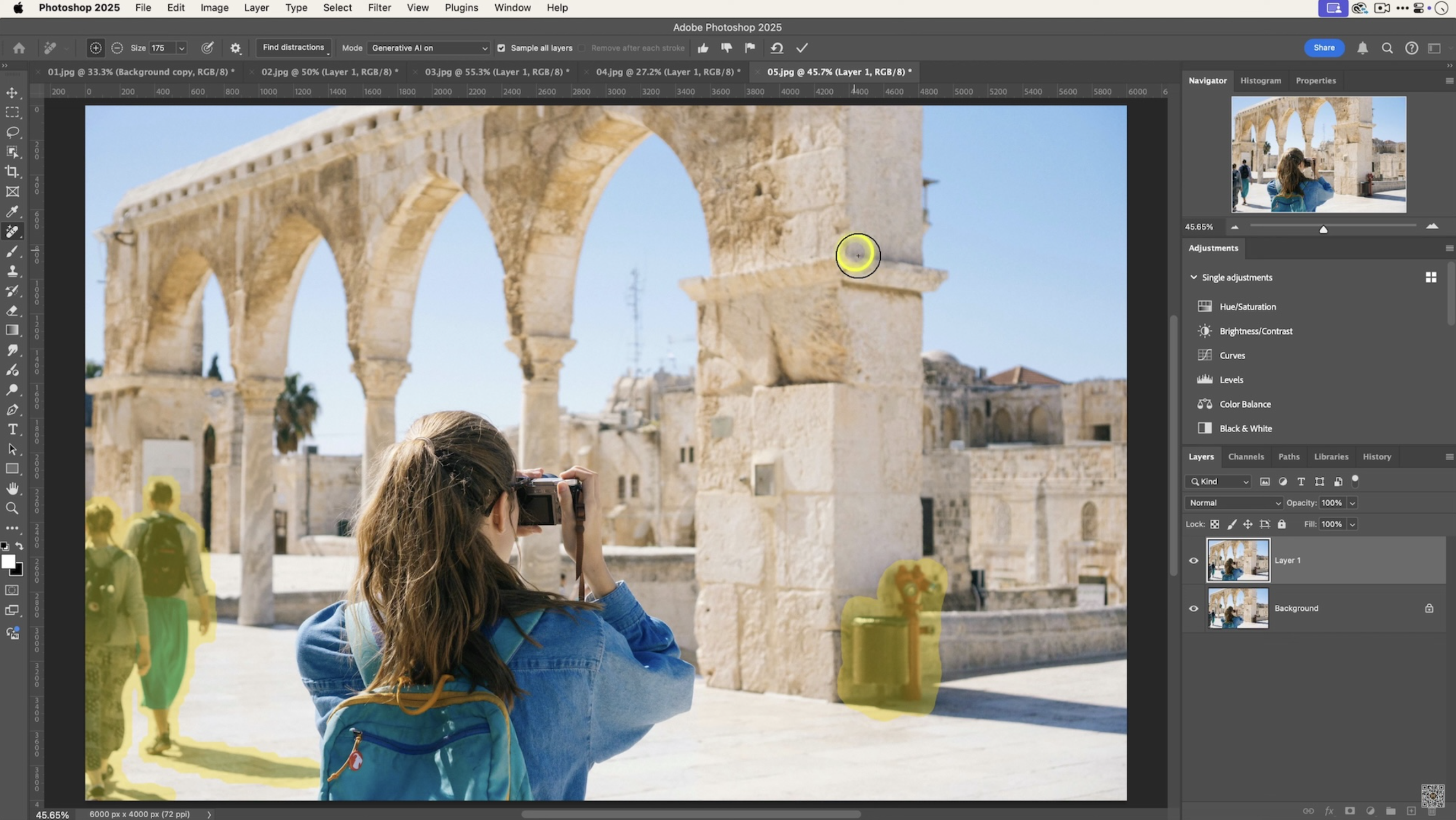Power lines ruining your sunset? Tourists photobombing your architecture shot? Photoshop 2025’s Find Distractions feature handles all of this with a single click.