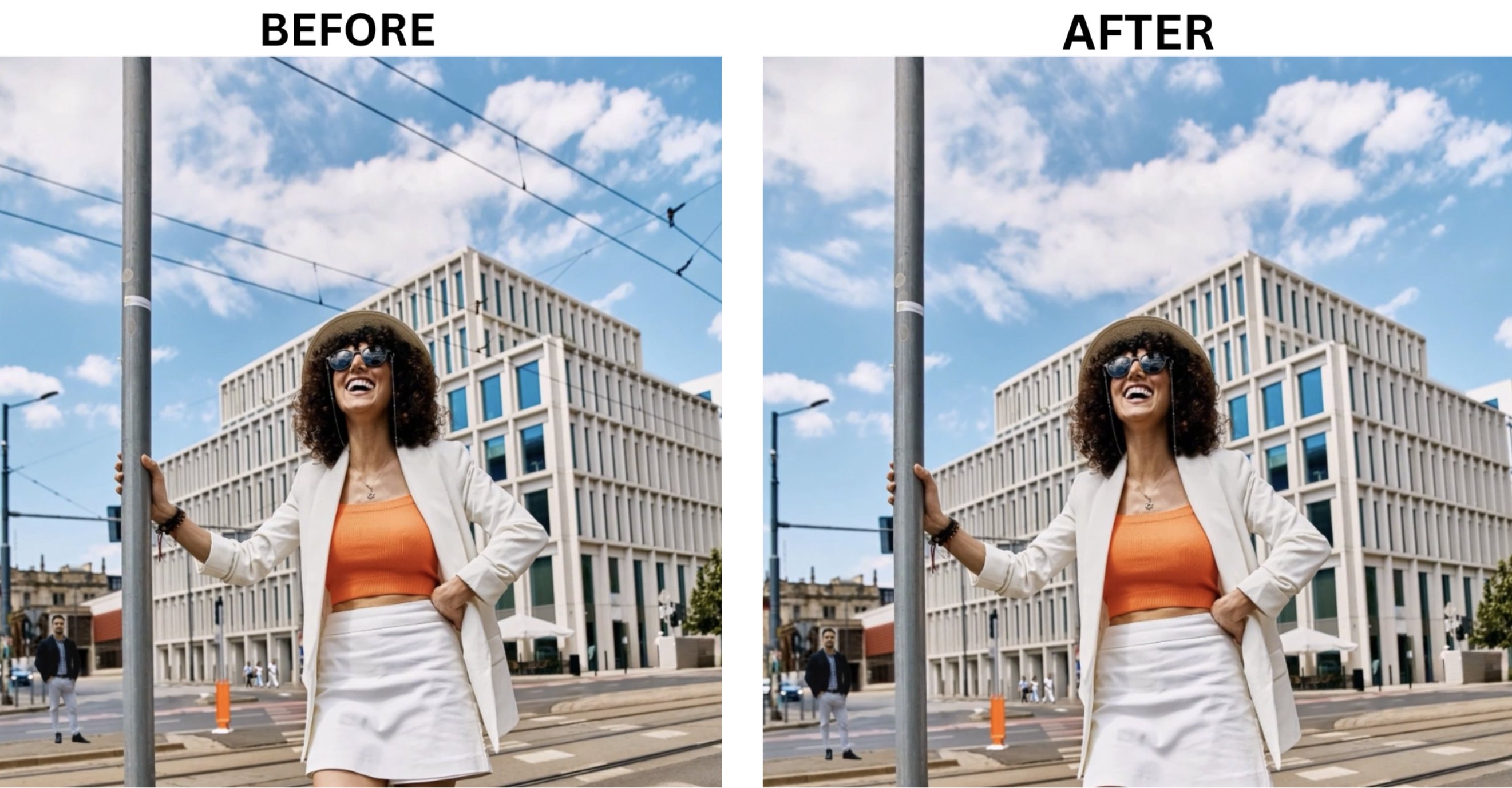 - Street Photography – Remove distracting signage while preserving atmosphere.