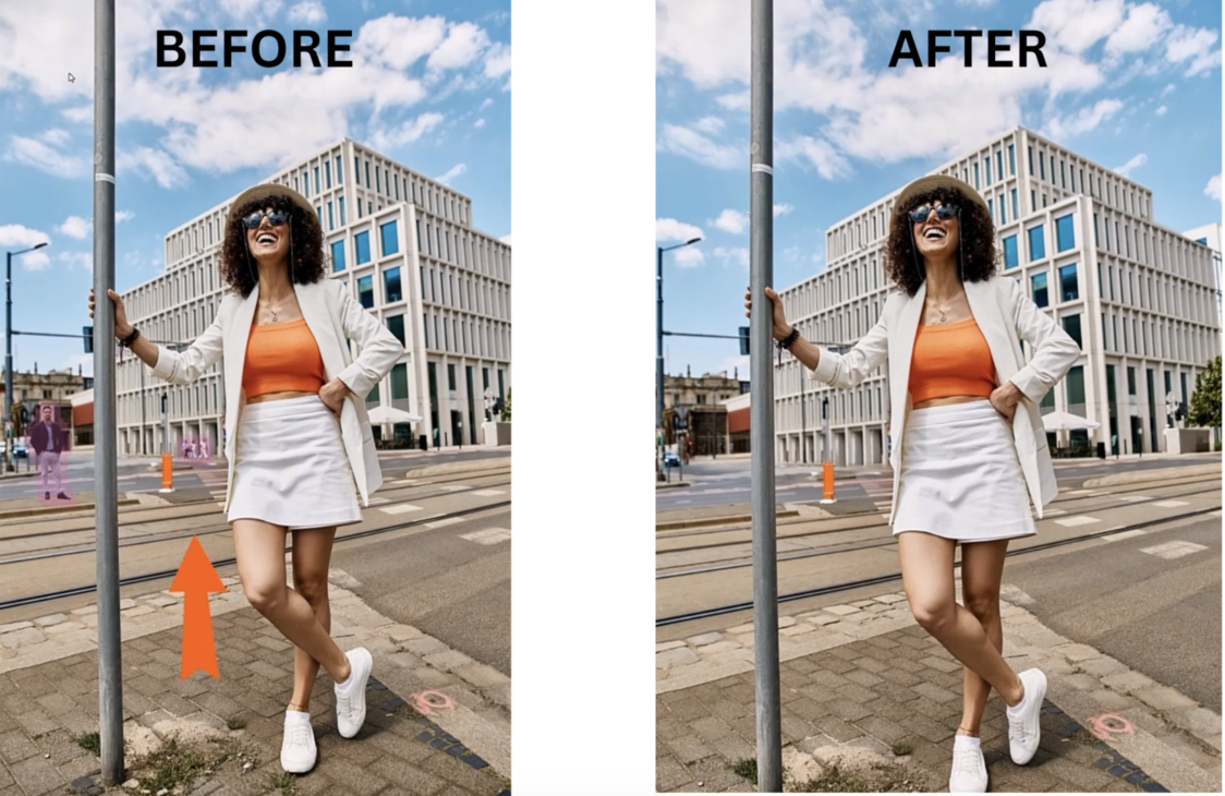 Removing wires from utility poles makes poles look disconnected and strange. Some cables are structural elements worth keeping. Background people sometimes establish scale or context. An empty plaza looks weird when it should naturally contain pedestrians. Use the feature thoughtfully, not automatically.